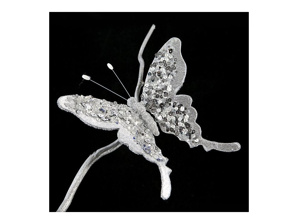 Luxusní vánoční šedý motýlek se třpytivými flitry je k uchycení do každé dekorace díky kovovému klipu