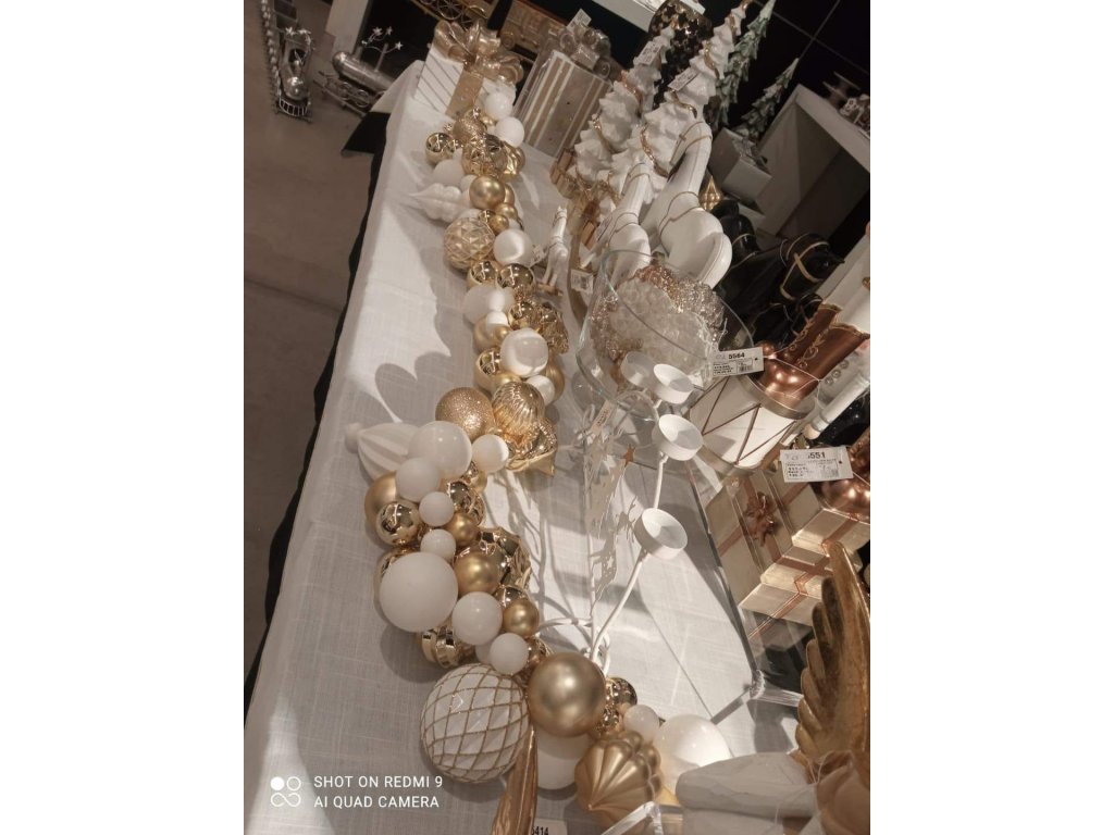 Vytvořte si kouzelnou atmosféru během vánočních svátků s naším ohromujícím vánočním věncem o velikosti 67 cm, který je pečlivě a bohatě zdoben baňkami různých tvarů a velikostí, které se pyšní elegantními zlato-bílými tóny. Tento nádherný kousek nejen že rozzáří váš domov, ale také přinese do vašich svátečních oslav neopakovatelný pocit elegance a útulnosti. Představte si, jak se tento věnec majestátně vyjímá na vašich dveřích, vítající hosty a rodinu s otevřenou náručí. Jeho jemné a přitom výrazné zdobení přitahuje pozornost a vytváří příjemnou atmosféru, která navodí pocit pohody a radosti. Každý detail, od lesklých až po matné baňeky, je vybrán s ohledem na harmonii a krásu, což z něho činí dokonalou dekoraci pro jakýkoliv interiér.