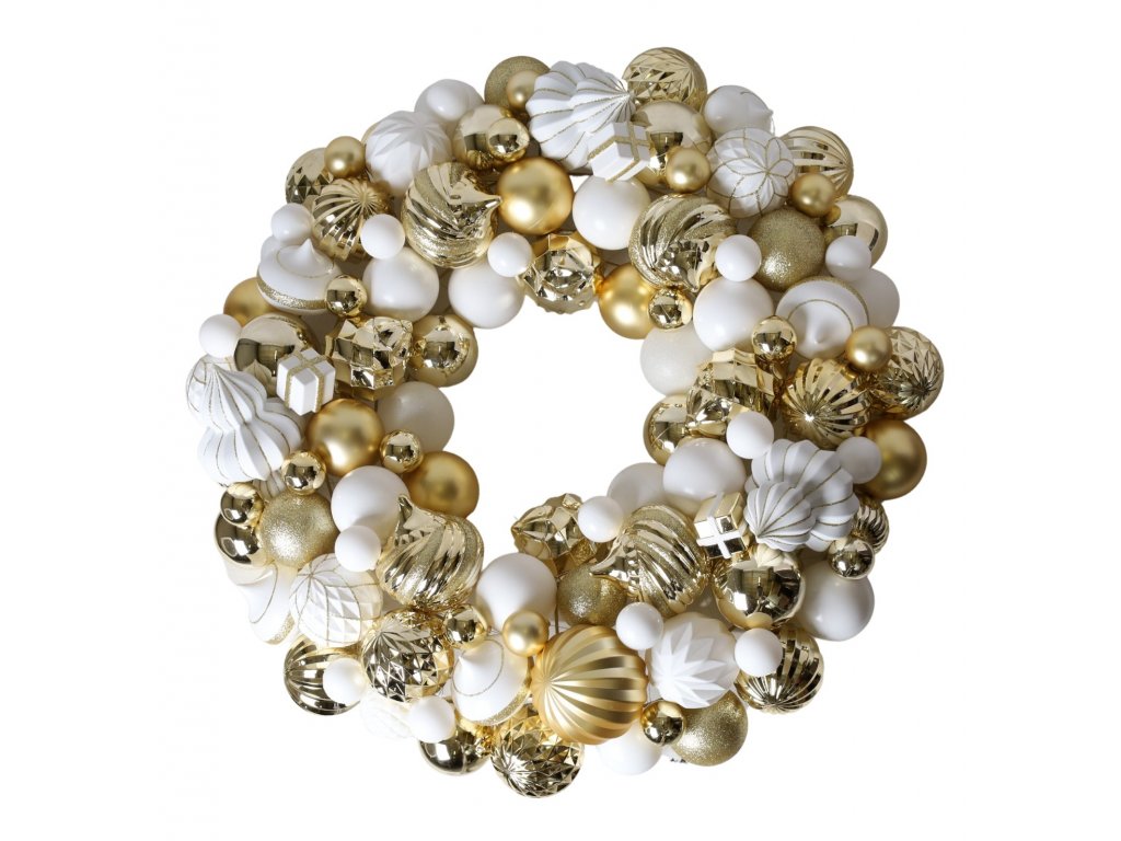 Vánoční věnec z baněk zlato bílý 67 cm
