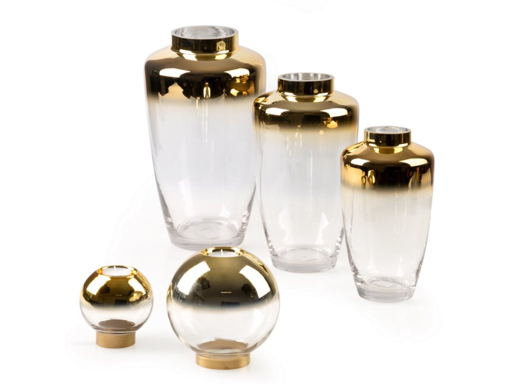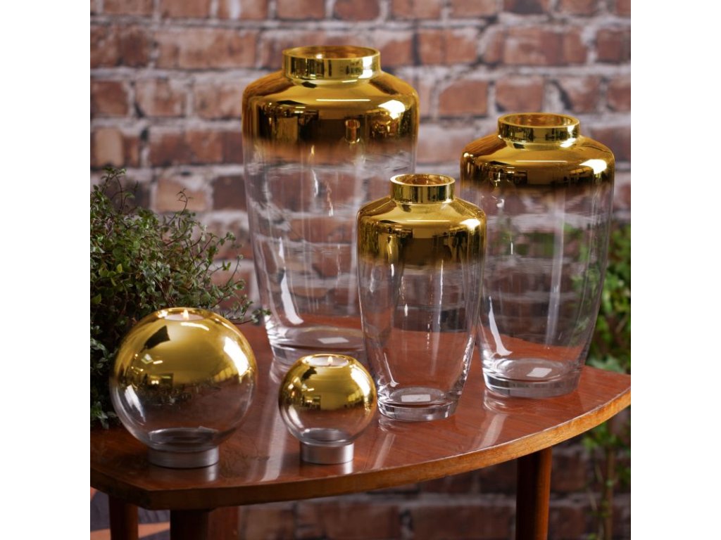 Skleněná váza ZOJA zlatá 25 cm