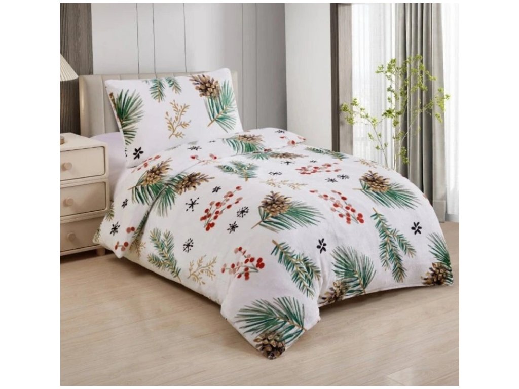Zimní povlečení Mikroflanel Conifer vyniká krásným přírodním motivem jehličí, šišek a bobulí, který působí svěže a slavnostně. Povlečení z mikroflanelu je mimořádně jemné, měkké a hřejivé, takže vám poskytne maximální pohodlí i v nejchladnějších nocích.