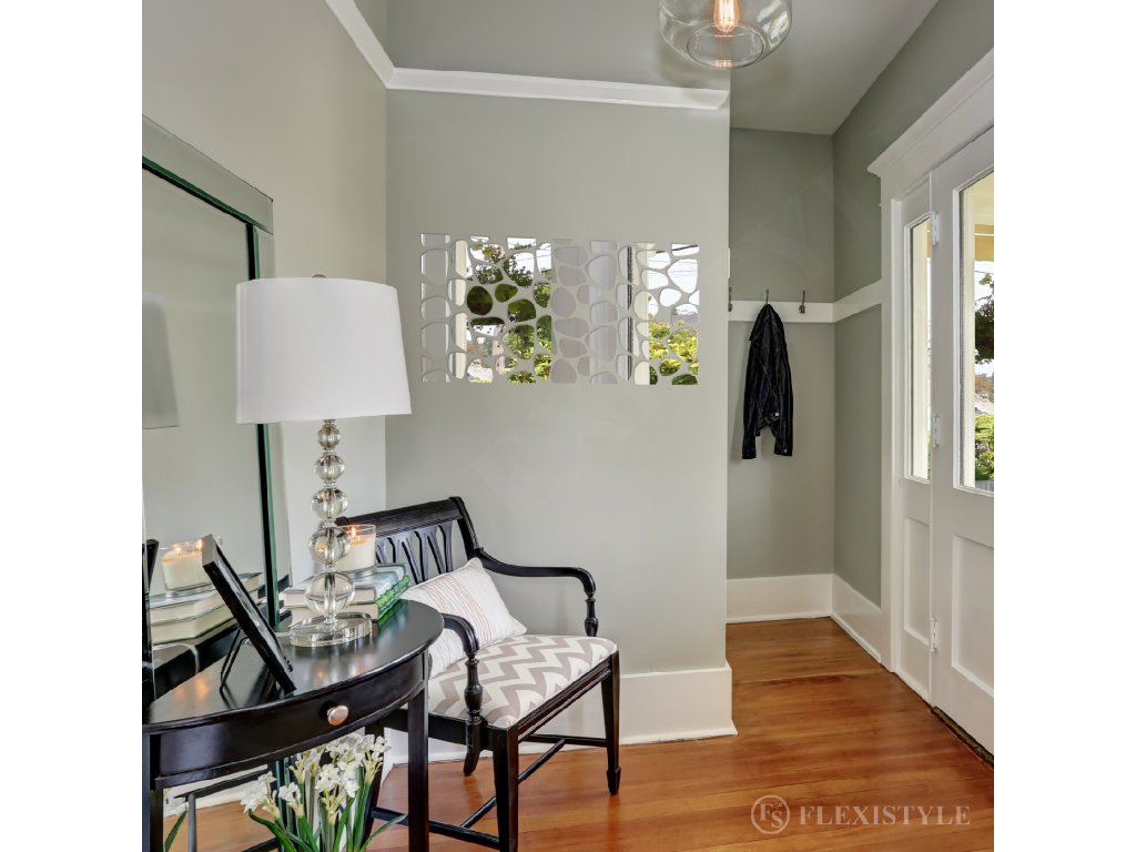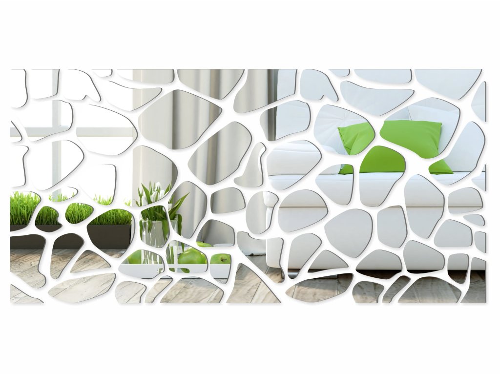 Moderní nástěnná zrcadlová dekorace je vyrobena z více prvnů tzv. akrylového skla původem z Itálie. Materiál vypadá jako skleněné zrcadlo, je však lehčí a nerozbitné. Dekorace se skládá z prvků opatřených ze spodní části pěnovou lepící páskou a z horní části vrchní folií, která chrání výrobek při montáži před poškozením. Zrcadlovou dekoraci sestavíte podle šablony, která je součástí balení. Jednotlivé dílky jsou ke stěně přilepeny pomocí oboustranné pásky, která je na nich z výroby připevněna. Zrcadlo je nepostradatelným doplňkem každého interiéru, krásně oživí a opticky zvětší každou místnost.