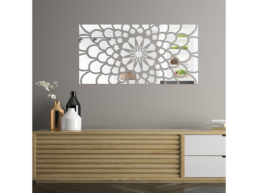 Samolepící zrcadlová dekorace Flower Power 140x70cm Stříbrná