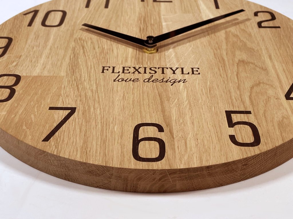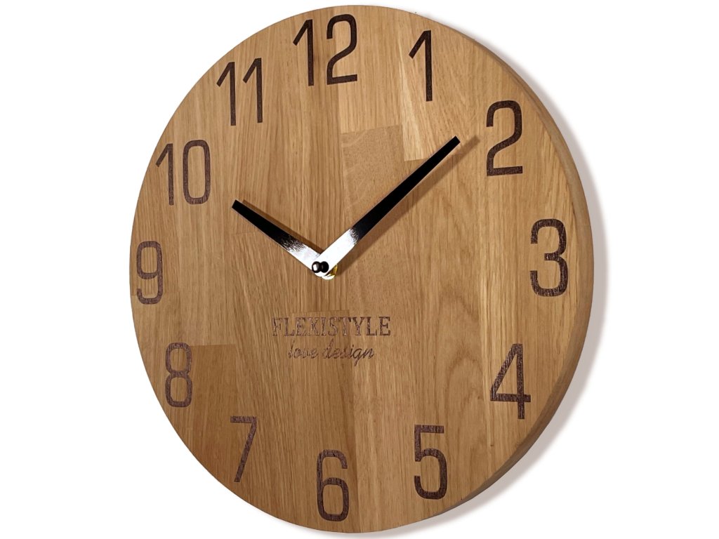 Velké nástěnné hodiny do obývacího pokoje , jídelny, chodby či kanceláře jsou vyrobené výhradně z laminovaného evropského dubu. Ciferník je potažena ekologickým dřevěným olejem. Dřevěné nástěnné hodiny jsou ideálním doplňkem interiéru pro ty, kteří hledají přírodní doplňky. Černé ručičky a čísla dokonale kontrastují s barvou dřeva. Použitý mechanismus nástěnných hodin je velmi tichý a přesný, nemá žádný tikající efekt. Hodiny jsou vyrobeny z obnovitelného certifikovaného materiálu. Povrchově jsou chráněny profesionálním fungicidním olejem na dřevo, díky kterému vám budou sloužit mnoho let.