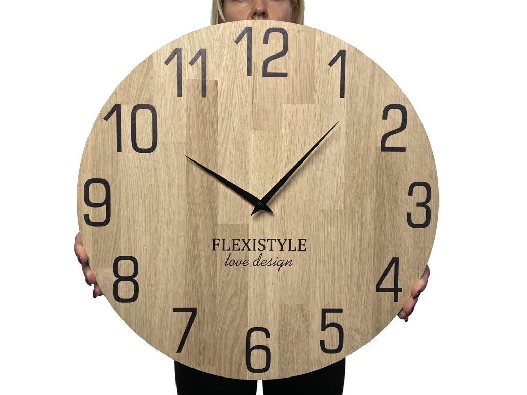 Velké nástěnné hodiny do obývacího pokoje , jídelny, chodby či kanceláře jsou vyrobené výhradně z laminovaného evropského dubu. Ciferník je potažena ekologickým dřevěným olejem. Dřevěné nástěnné hodiny jsou ideálním doplňkem interiéru pro ty, kteří hledají přírodní doplňky. Černé ručičky a čísla dokonale kontrastují s barvou dřeva. Použitý mechanismus nástěnných hodin je velmi tichý a přesný, nemá žádný tikající efekt. Hodiny jsou vyrobeny z obnovitelného certifikovaného materiálu. Povrchově jsou chráněny profesionálním fungicidním olejem na dřevo, díky kterému vám budou sloužit mnoho let.