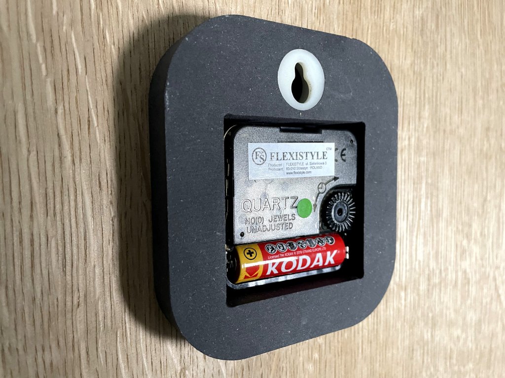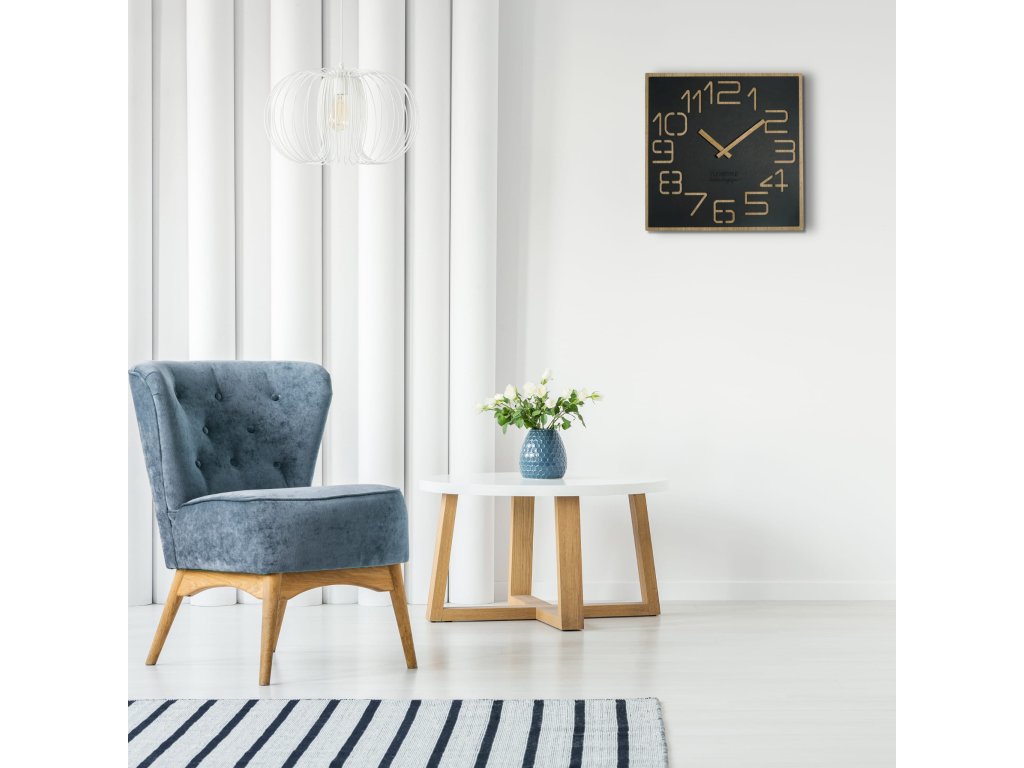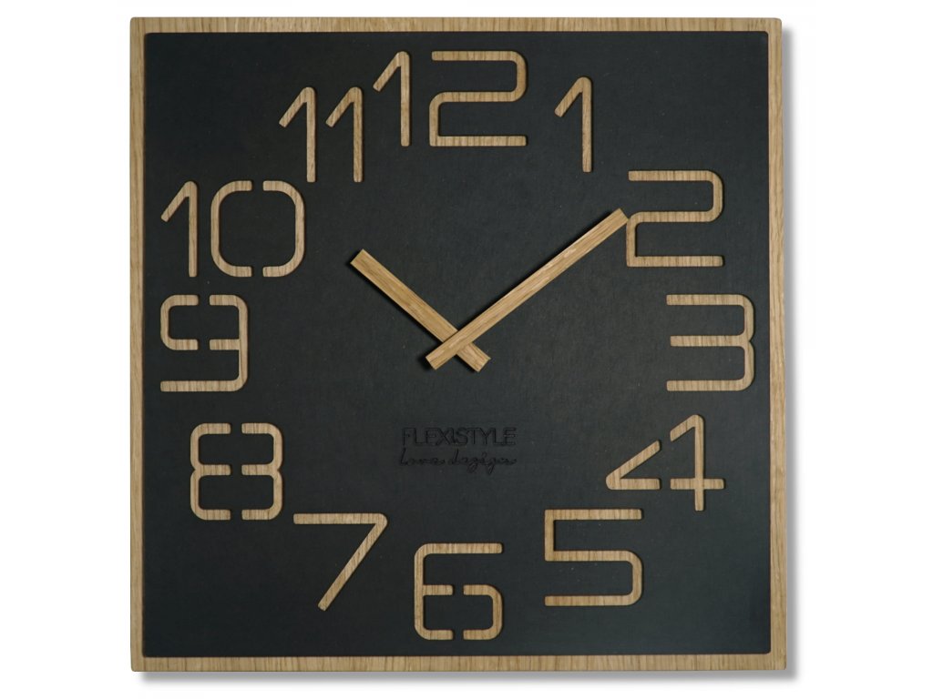 Hodiny jsou vyrobeny z ekologické a velmi tvrdé desky HDF. Materiál je získáván z dřevěných částic vtíraných do vláken, které se spojují pryskyřicí a organickými barvivy. Po vysušení se deska extruduje za vysoké teploty a vysokého tlaku. Tímto způsobem se vytvoří deska s vysokou hustotou, až o 50% větší než masivní dřevo. Díky této technologii je získán velmi odolný materiál s velmi jedinečným vzhledem. Hodiny jsou tvořeny dvěma vrstvami, kdy spodní prostupuje ve výřezech. To dodá hodinám punc originality.