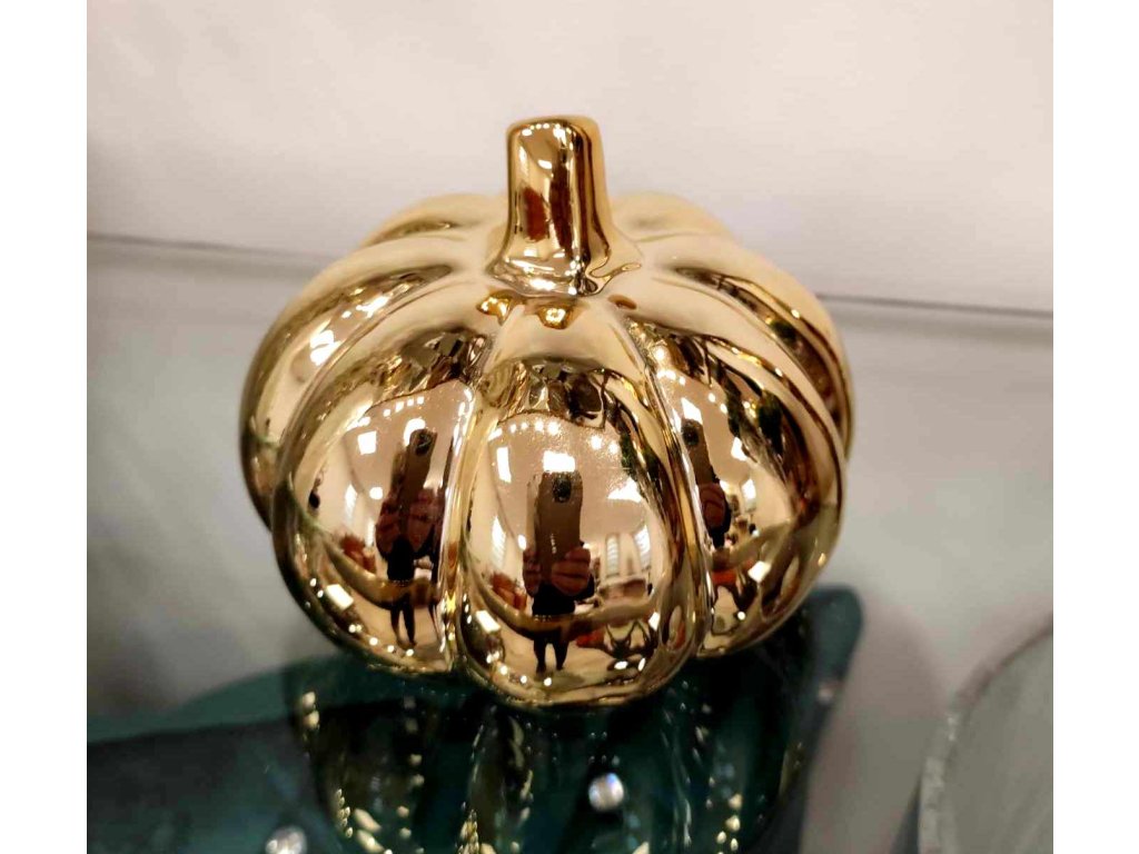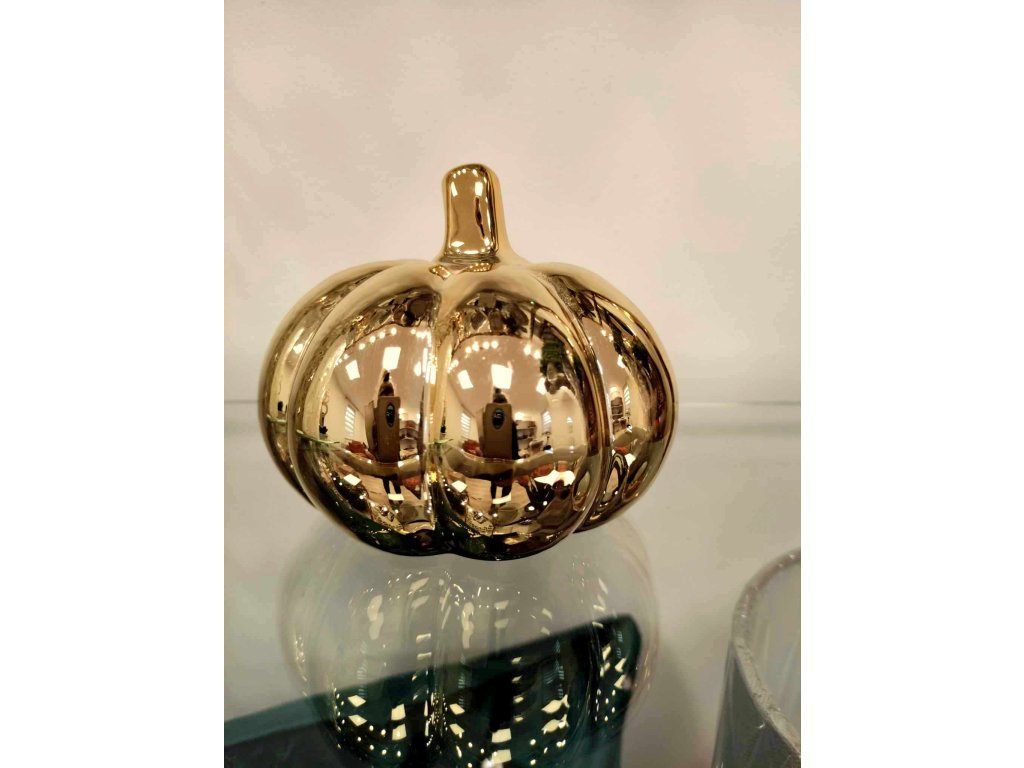 Zlatý lesk, který dýně vyzařuje, má schopnost prozářit každé aranžmá, do kterého ji umístíte. Její lesklý povrch odráží světlo a vytváří tak fascinující hru odlesků, která dokáže oživit jakýkoli prostor. Ať už ji umístíte na poličku, konferenční stolek nebo jako součást širší podzimní dekorace, zlatá dýně se stane středobodem pozornosti a vnese do vašeho domova podmanivé kouzlo elegance. Zkrátka, dekorativní keramická dýně v zlaté barvě je víc než jen dekorace; je to umělecký kousek, který dokáže vtisknout do vašeho interiéru jedinečný charakter a podmanivé kouzlo. Tento nádherný doplněk je ideální pro všechny milovníky podzimní atmosféry a ti, kteří chtějí svému domovu dodat špetku elegance a vkusu.