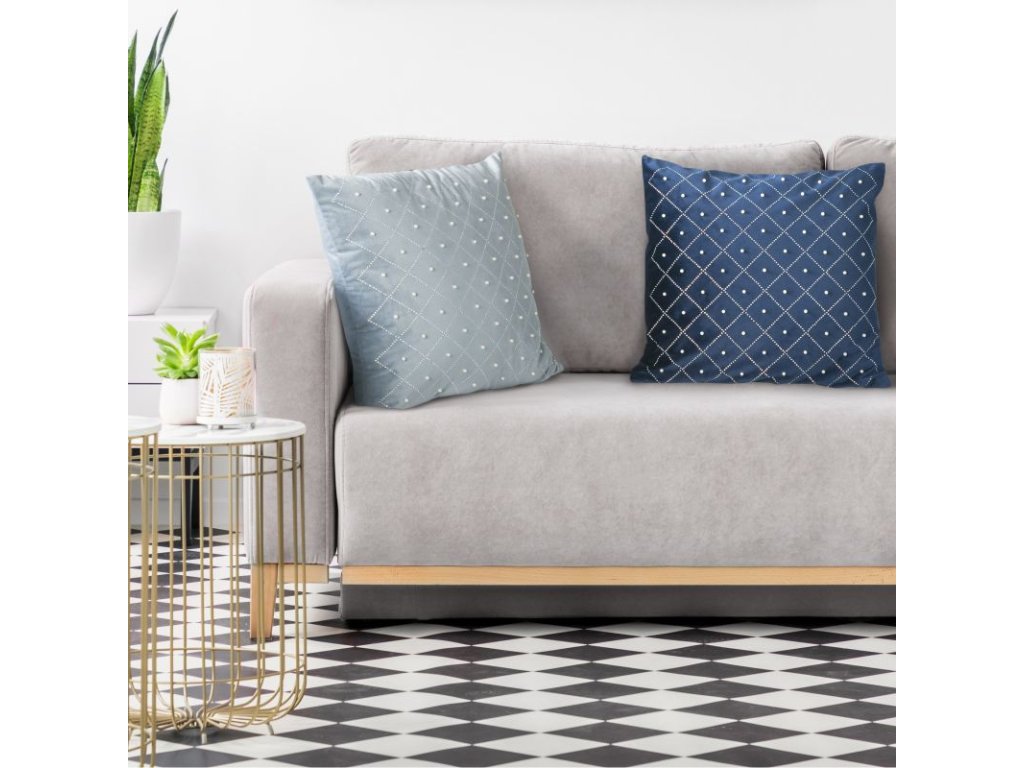 Hledáte módní a jedinečné doplňky do vašeho interiéru? Kolekce AMI z měkkého welvetu v pastelových barvách s přední stranou bohatě zdobenou třpytivou aplikací kamínků a korálků geometrického vzoru je tou správnou volbou. Vzájemná kombinace pastelových tónů tohoto polštáře vnese do interiéru útulnost a