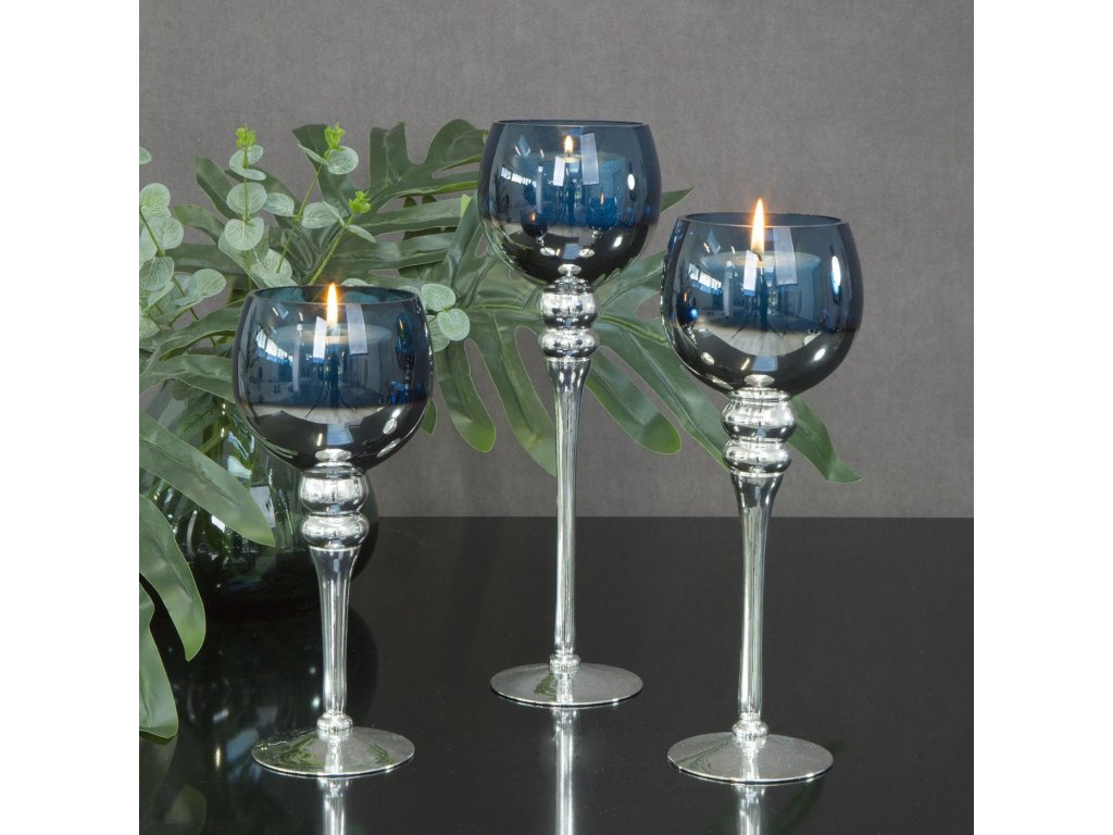 Chystáte oslavu, která má být v elegantním stylu? Aranžmá stolu je základem sváteční tabule, na které nesmí chybět svícen. Dekorativní skleněný svícen CLOE na štíhlé noze elegantně zdůrazní stolování. V modro stříbrném kalichu vynikne třpyt plamínku svíčky a navodí u stolu příjemnou atmosféru. Svícen je vhodný do klasických i moderních interiérů. Nejlepší volba na doladění designu interiéru, na štědrovečerní prostřený stůl, ale i na slavnostních rautech či svatbách.
