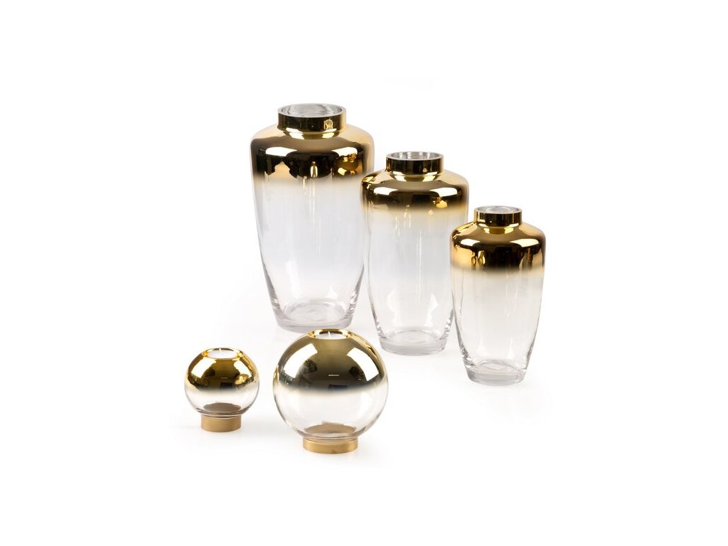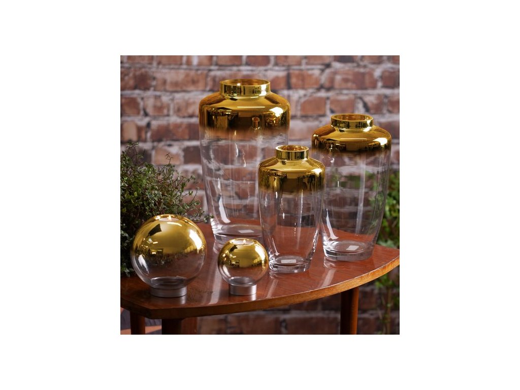 Skleněný svícen Zoja zlatý 15 cm