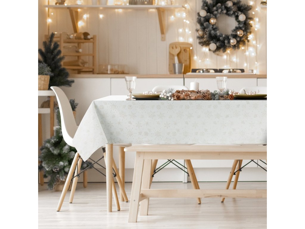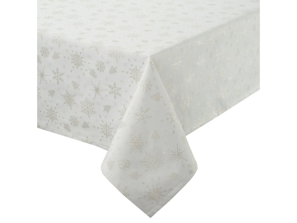 Slavnostní stůl je ústředním místem pro setkání a oslavy jídla, které vyžaduje jedinečné prostředí. Ubrus FLASH z žakárové látky s motivem stříbrných vloček a stromečků je mimořádně vkusný a zároveň svou formou jednoduchý ubrus, který slavnostně ozdobí stůl. Elegantní, lesklý ubrus dokonale ozdobí vánoční stůl a navodí sváteční atmosféru při společných vánočních setkáních. Látka, která je mixem bavlny, polyesteru a metalické nitě, je nenáročná na údržbu.