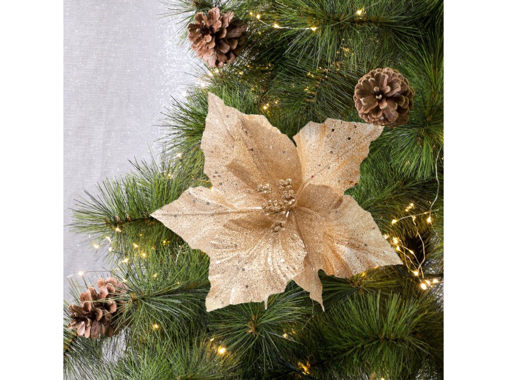K vytvoření harmonii vánočních svátků nepochybně pomůže vánoční stromek ozdobený květinami. Vánoční květy jsou trendem našich vánočních svátků. Jsou nejen nádhernou dekorací, ale nesou i symbol života a hojnosti. S květy zlatých tónů budete mít vánoce vskutku jedinečné.