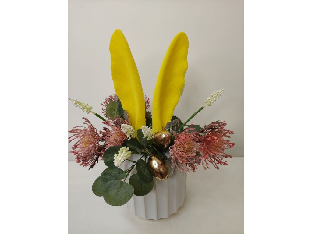 Dekorace je určena k zasazení do vázy, květinového aranžmá, velikonočního truhlíku nebo dekorativní nádoby. Skvěle se kombinuje s jarními květinami, větvičkami, vajíčky či přírodními doplňky a vytváří výrazný designový prvek.