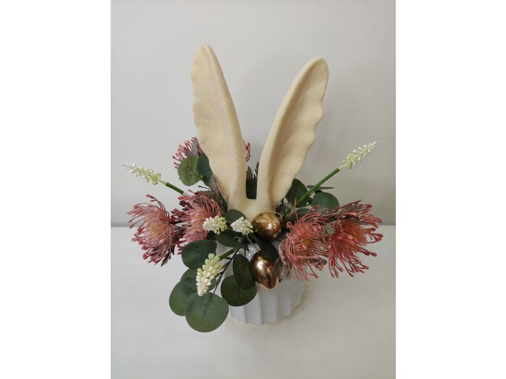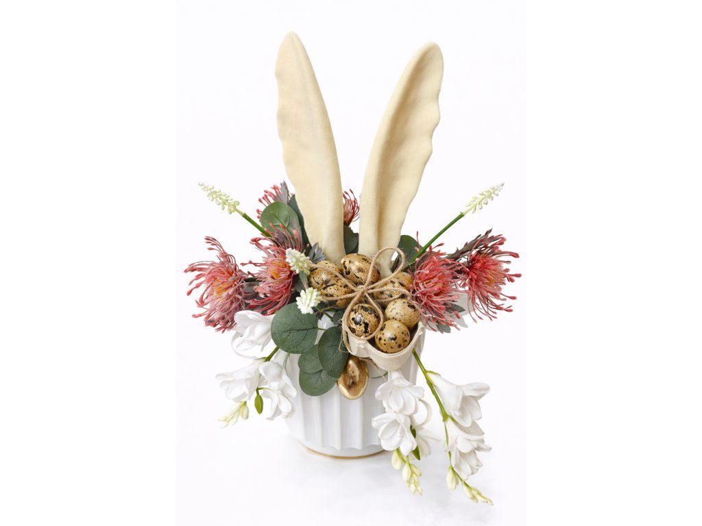 Dekorace je určena k zasazení do vázy, květinového aranžmá, velikonočního truhlíku nebo dekorativní nádoby. Skvěle se kombinuje s jarními květinami, větvičkami, vajíčky či přírodními doplňky a vytváří výrazný designový prvek.