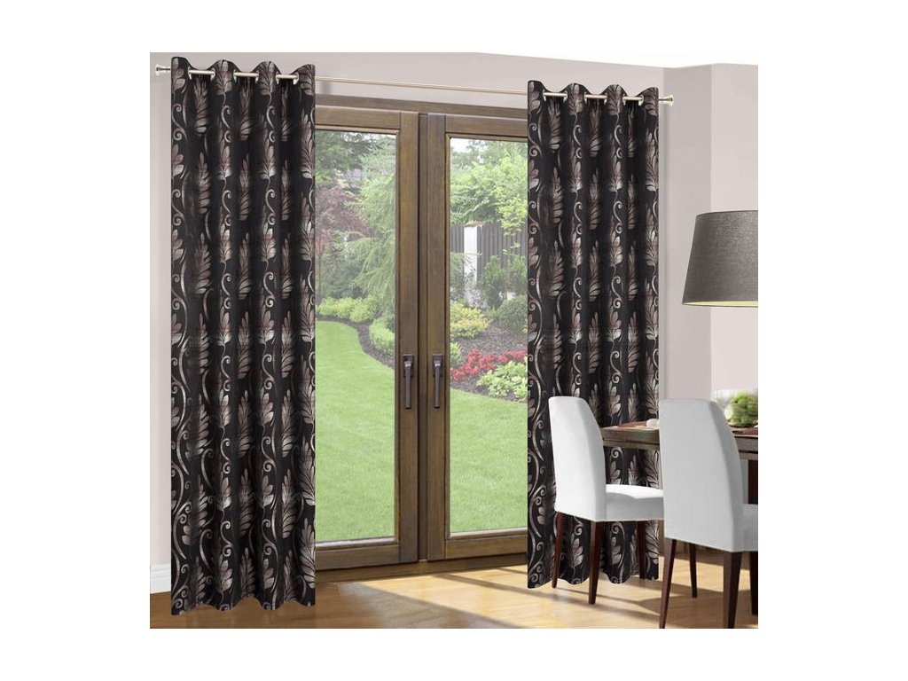 Neprůhledný závěs v černé barvě s pěkným vertikálním květinovým vzorem hnědých odstínů . Tento hotový závěs dodá prostoru útulnost. Dekorační závěs je opatřen kovovými oky o průměru 4 cm k zavěšení na záclonovou tyč. Pokyny k ošetřování naleznete na obalu výrobku.